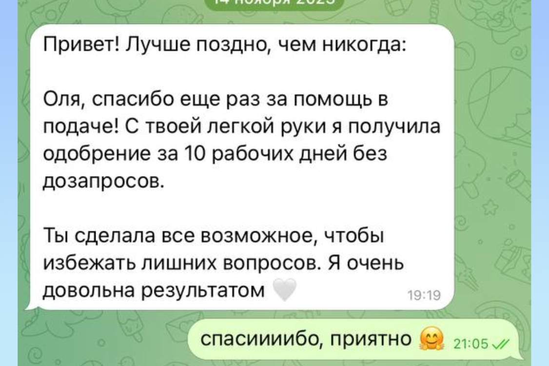 Все документы мы сопровождаем подробными анкетами и юридически грамотными сопроводительными письмами, в которых объясняем миграционным органам, почему именно ваш кейс должен быть одобрен согласно законам Испании. Итоговый пакет документов насчитывает до 90 страниц и всегда включает развернутое сопроводительное письмо, которое пошагово объясняет офицеру, на какую страницу и какой документ нужно обратить внимание.